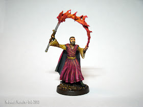 If you said Link, from the Legend of Zelda, then you'd have been right! That's what Jason guessed and for his prize I offered to paint a model for him for free. He chose a Falkaaran fire wizard for his mini, and after a few months of playing email tag, we met up and I finally got the model on my desk.